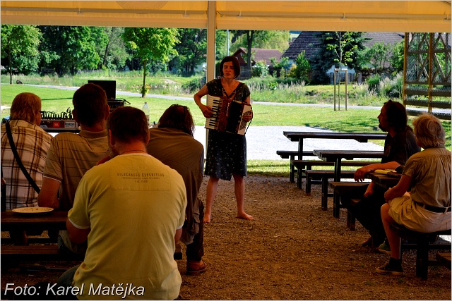 Po dopolední vernisáži, na které atmosféru umocňovalo prachatické jazzové trio ve složení Ivan Boreš a Katka a Jakub Weisovi, pokračovala celá akce odpoledním doprovodným kulturním programem ve sportovním areálu na Sokolské louce. A program to byl pestrý.