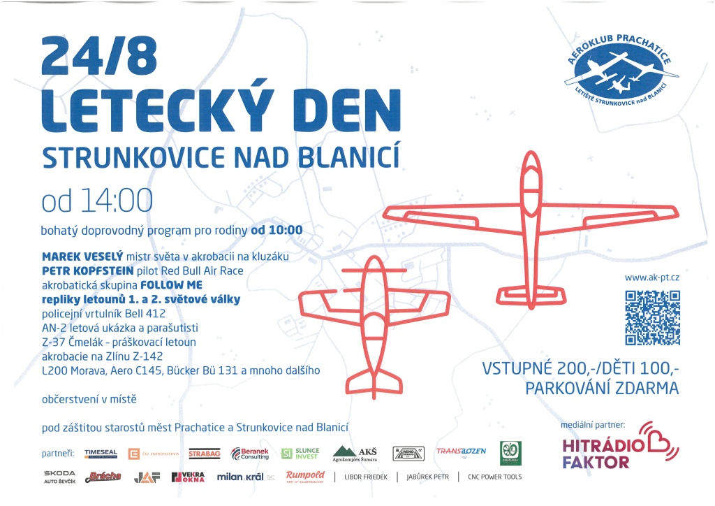 Aeroklub Prachatice zve na LETECKÝ DEN na letišti Strunkovice nad Blanicí.