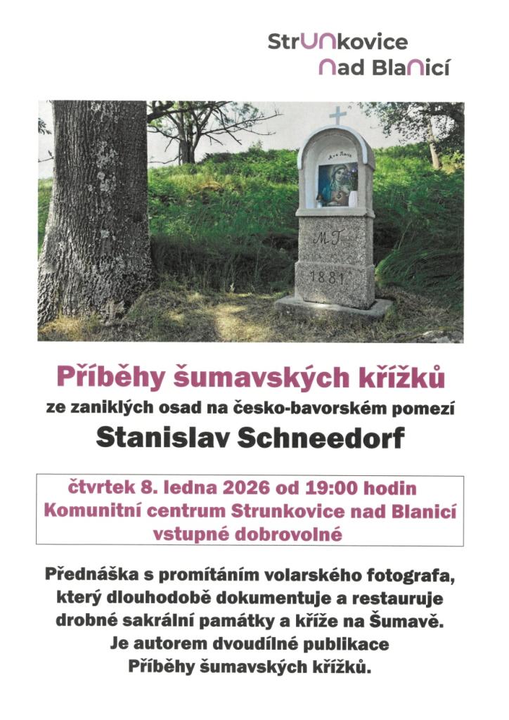 Přednáška Stanislava Schneedorfa, který dlouhodobě dokumentuje a restauruje drobné sakrální památky a kříže na Šumavě.