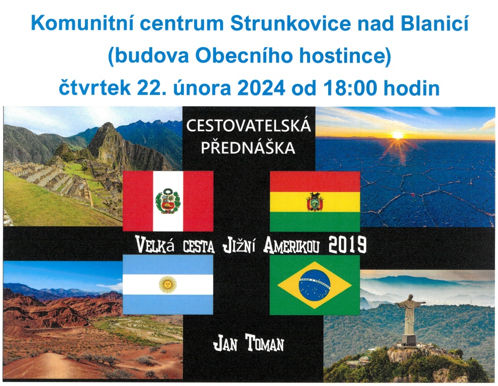 Cestovatelská přednáška Jana Tomana o cestě Jižní Amerikou r. 2019.