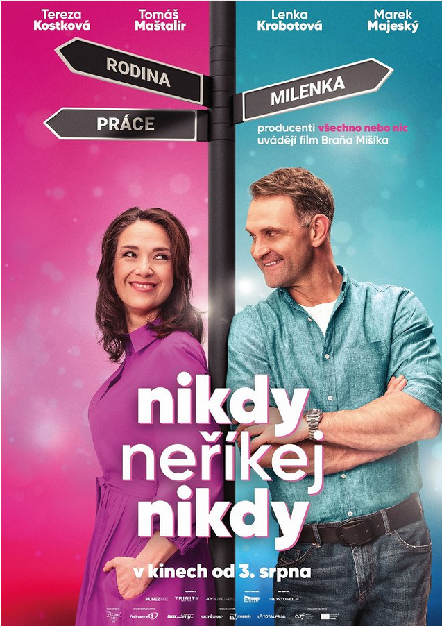 Příběh Nikdy neříkej nikdy ukáže, že všechno zlé opravdu může být pro něco dobré. Hlavní postavy Naďa a Petr se se svými partnery právě rozvádí. Petrova manželka je lékařkou na misích v Africe a jejich vztah trpí dlouhým odloučením, z Nadina muže se vyklubal záletník, který se občas zamiluje do někoho mladšího. Naďa a Petr do sebe nejprve lehce vrazí autem a díky tomu na sebe začnou narážet i dále v životě. Z jejich rozvíjejícího se vztahu se pak stane bláznivá jízda dvou neúplných rodin, která bude výzvou nejen pro ně, ale i pro jejich blízké... protože všechno se může stát.