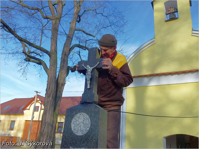 Byla proto snesena a dne 14.12.2020 se o její opravu postaral pan Jan Prokop. Zjistil při tom, že při výrobě pomníku v roce 1923 se tehdejší řemeslníci „netrefili“ s umístěním otvoru pro uchycení Krista, neboť jej vyvrtali příliš vysoko. Nahradili ho proto novým a původní opatřili železným šroubem. Ten však časem vlivem koroze a působení mrazu zapříčinil prasknutí kamenného kříže…
