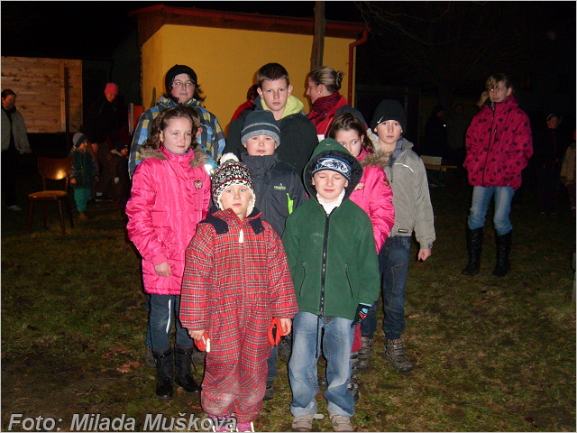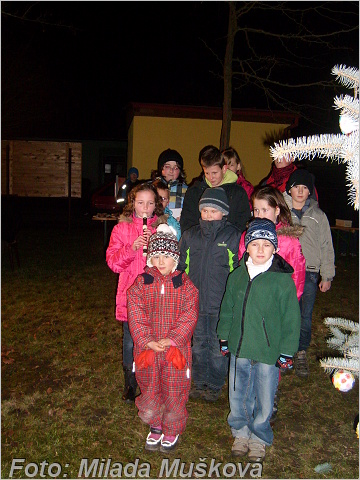 Již v pátek děti i dospělí vyráběli ozdoby a přikrášlili adventní věnec. V sobotu muži na stromek nainstalovali elektrické osvětlení a děti stříbrný smrček ozdobily. V 17:00 hod. pan starosta přivítal přítomné, kterých se sešlo na tak malou obec opravdu hodně. O zábavu se postarala kapela p. Václava Fialy, s básničkami a koledami vystoupily děti. Občerstvení nachystaly místní ženy a jen se po něm zaprášilo. Nechyběl ani čaj, grog či káva. Všem, kteří pomohli s přípravami, patří velký dík, neboť najít si čas a hlavně chuť v dnešní uspěchané době je krásné. Přejeme všem krásný advent, Vánoce i celý příští rok.