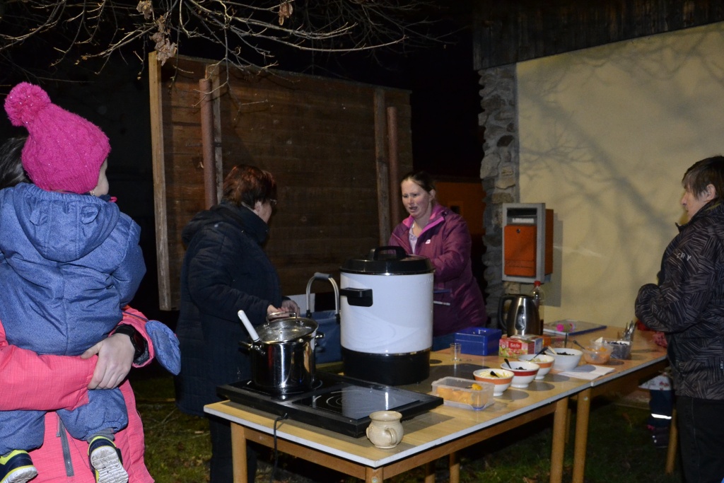 Z kaple se pak všichni přesunuli na náves k rozsvícenému vánočnímu stromu, pod kterým našly děti jako odměnu za zpěv a recitaci drobné dárky. Pro všechny přítomné pak bylo přichystáno pohoštění, o jehož přípravu se postaraly svojnické ženy.