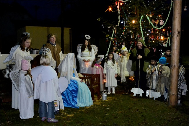 Týden před si děti za pomoci dospělých vyrobily řadu vánočních ozdob. Svojničtí muži postavili strom a postarali se o jeho osvětlení. Z prodeje občerstvení při různých akcích osadního výboru se podařilo získat něco peněz, a proto jsme mohli přikoupit další řetěz a ozdobit i túje vedle kapličky. Dopoledne se sešly na návsi děti a oděly stromek do slavnostního hávu. V půl páté po uvítání panem Matějkou a paní Zmrhalovou se stromek rozzářil v celé své kráse. Za zvuku koled pak od kapličky proudili andělíčci, Marie s Josefem, pastýři i Tři králové k betlému vedle stromku. O občerstvení se opět postaraly svojnické ženy, které napekly jak sladké, tak slané dobroty. Nechyběl ani punč, grog či čaj. Je hezké, že se vždy najde dost lidí všech generací, kteří ochotně pomohou a připraví milé setkání pro celou vesnici. Vždyť takové sousedské popovídání a chvilkové zastavení není na škodu, a to nejen v čase adventním. Přejeme všem klidný předvánoční čas a pohodové Vánoce.