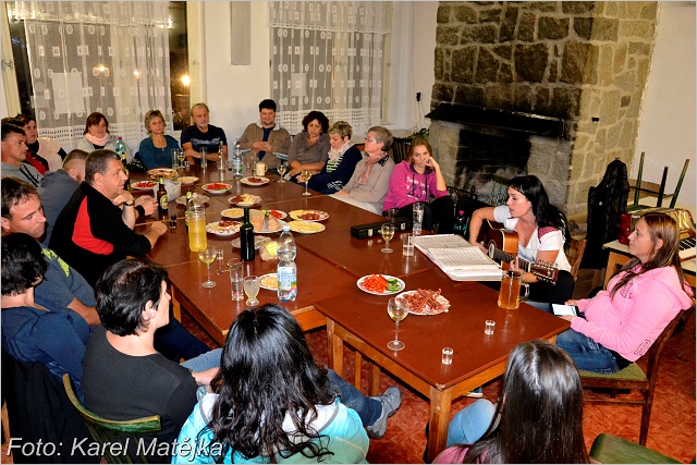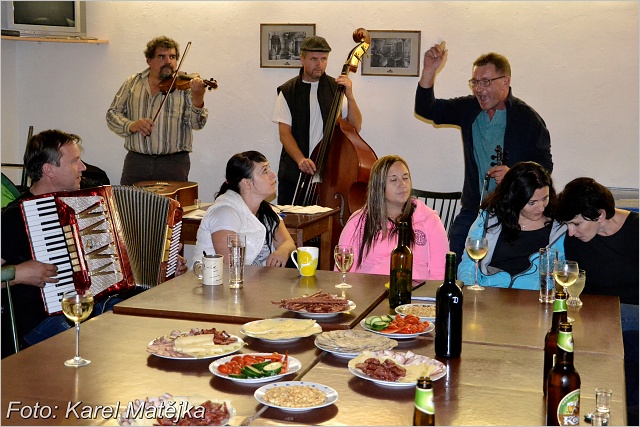 Po ranní hudební zkoušce v kostele sv. Dominika pokračoval sobotní program návštěvou poutního areálu Lomec s kostelem Panny Marie. Odpoledne jsme se přesunuli do nedalekého Husince, kde jsme si prohlédli Husův rodný dům a přehradu na řece Blanici. Podvečer byl vyhrazen prohlídce Strunkovic, při které jsme neopomněli navštívit nejen kavárnu Na Dražkách, ale i fotbalový zápas ve zdejším sportovním areálu. Že na cestě nechyběly hudební nástroje, zpěv a moravská slivovice není nutné zdůrazňovat. Večerní posezení bylo přichystáno v Autokempu Žíchovec, kde byli naši hosté ubytováni. Povídalo a zpívalo se dlouho do noci.
